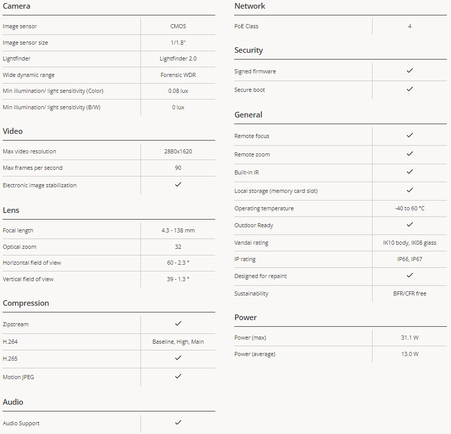 AXIS Q1806-LE Bullet Camera Technical specifications DATASHEET