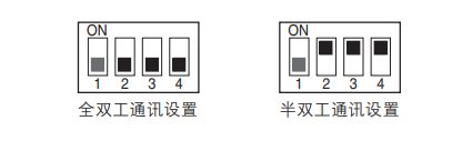 按照下图对DIP开关1进行设置时,可将通讯参数复位至出厂时的初始设置,也可根据需要调整设置值。